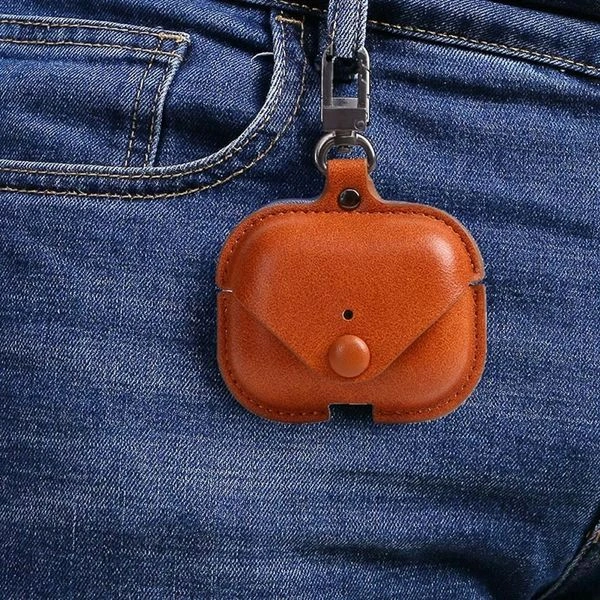 Leather Earphone Case - Cover Drop- Proof Anti- Scratch Charging Earphones Shell for Storage Pro Headphones Leather Bag Portable Accessories Light Case Brown